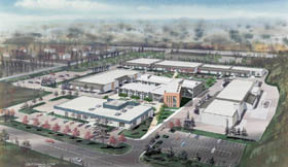 The design includes a new multi-level courtyard with landscaping and seating areas, parking at the perimeter of the site to replace parking removed for the new building in the center of campus, and re-location of the Truck Driving Circuit to the north side of the campus, on the property Bates wants to purchase from the city.