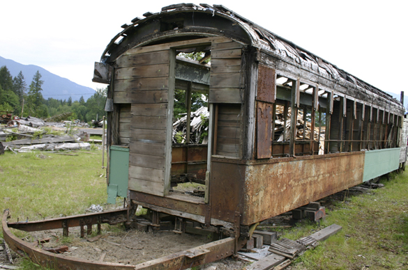 - A Turtleback streetcar that once operated on Tacoma streets now sits in an open field near Darrington, Wash. (PHOTO BY TODD MATTHEWS)