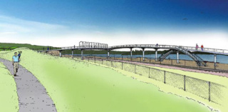 The overpass will take walkers from the southwest corner of Central Meadow over the BNSF tracks to the beach. Staircases will give walkers access to the beach and the first of three planned off-leash areas. When it is completed in 2010, the overpass will provide public access to the west-exposure beach.