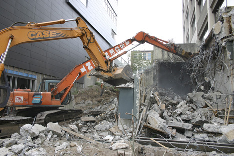 Demolition is under way to make room for a renovation of the 12th Street hill climb connecting Pacific Avenue to Commerce Street. On Friday, contractors were busy clearing the passageway. The open space on the right was once entry to the Escalade, a moving sidewalk that helped shoppers travel downtown Tacoma’s hillside shopping district.