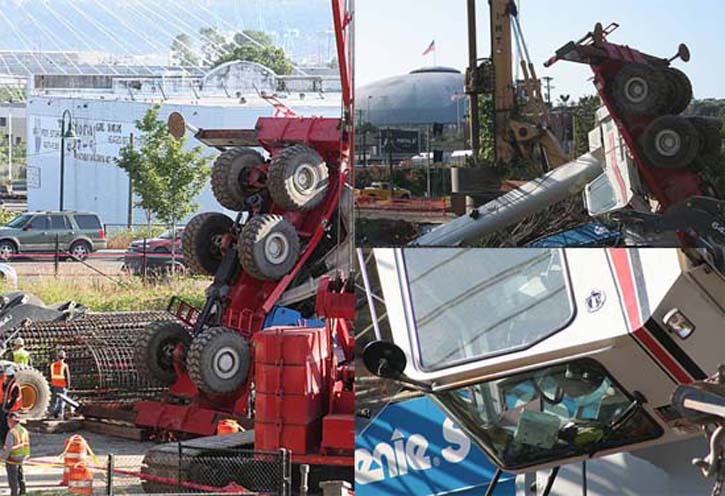A 100-ton crane working on a project to connect Sounder commuter rail service between Tacoma and Lakewood by 2012 tipped over on June 30 in Tacoma’s Dome District. The accident occurred at approximately 3 p.m. at a site near 25th and A street and near Interstate 705. No one was injured. The accident stopped construction while it was investigated.