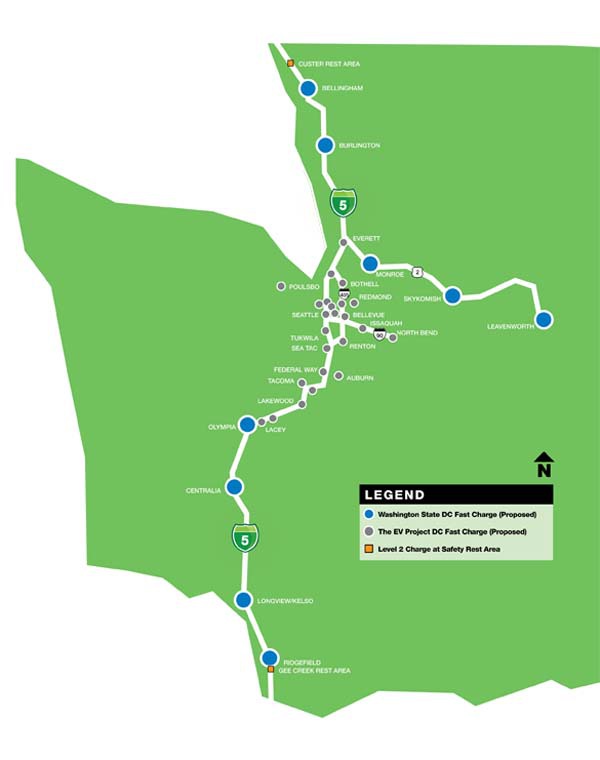 It’s the first sign of a border-to-border network of public electric-vehicle charging stations and the first stop on Washington’s segment of the West Coast Electric Highway along 276 miles of Interstate 5 between the state’s borders with Oregon and Canada.