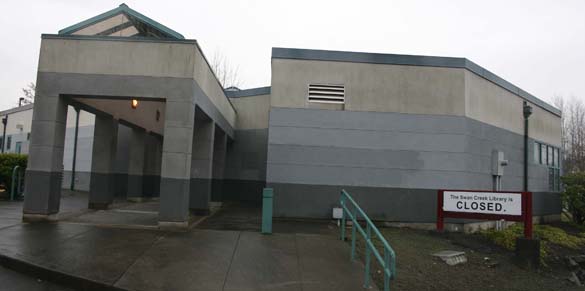 - More than two years after it was shuttered due to budget cuts, the former Swan Creek Library building on Tacoma’s east side appears poised to be sold. (PHOTO BY TODD MATTHEWS)