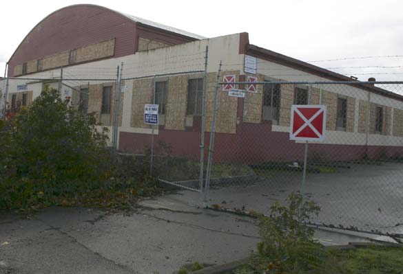 The Tacoma Daily Index photographed the abandoned building in March of 2012. Evidence of the candy maker’s presence still existed in some places: the building’s trim was painted the familiar pink color of Almond Roca tins; a faded sign directed delivery drivers to the receiving department; and a reception counter and empty office spaces were visible if you peered through through dust-covered windows. The Index returned to the site this week to find windows boarded over and the entire 5.6-acre property ringed by a chain-link fence.