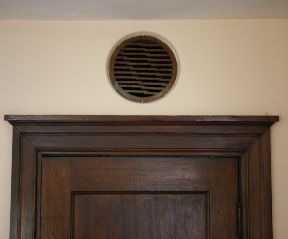 - Tacoma architect Stanley Shaw experimented with a number of creative architectural designs in his own home. In the living room, he re-purposed a wooden grille from an old Victrola and installed it above a closet door to provide ventilation for wet coats. (PHOTO COURTESY SUSAN JOHNSON / ARTIFACTS CONSULTING)
