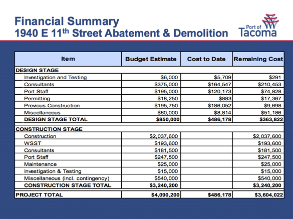 “It will be good to see that work completed,” said Port of Tacoma Commissioner Clare Petrich during a commission meeting on July 3, when commissioners authorized funding for the demolition.
