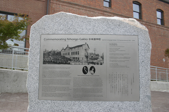 The Japanese Language School Memorial is located near the corner of South 17th Street and Pacific Avenue on the UWT Prairie Line Trail. More information is available online here.