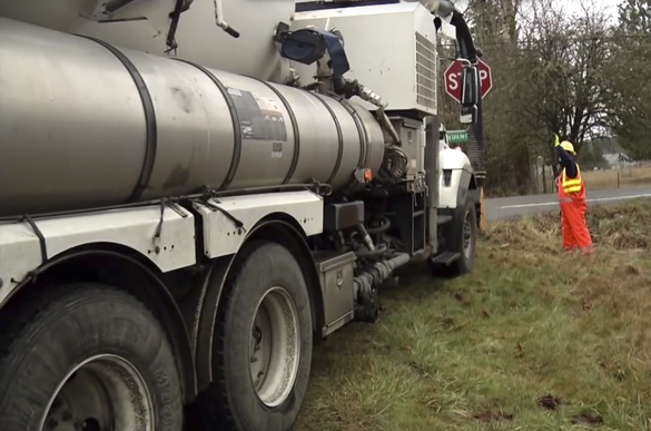 - A vactor truck unloads storm drain waste at a decant facility in Pierce County. Processed water is used to wash maintenance trucks, while the solid waste is reused as a soil amendment or transported to a solid waste facility. (PHOTO COURTESY PIERCE COUNTY)