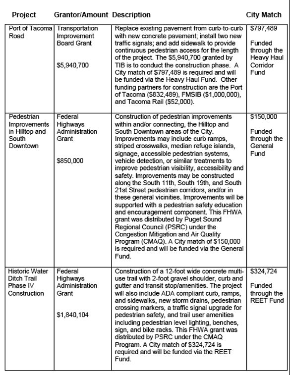 The City of Tacoma Tuesday formally accepted seven grants totaling approximately $13 million to help pay for a range of public works projects throughout the city.