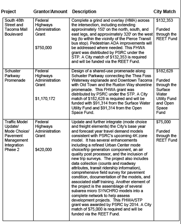 Tacoma City Council approved a resolution Tuesday to accept the grant funding and provide the matching funds during a public meeting at Tacoma City Hall (see “Tacoma poised to accept $13M in grants for public works projects,” Tacoma Daily Index, Jan. 9, 2015).