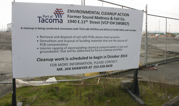 The Port of Tacoma began to make public its plans to demolish the building at least three years ago. In 2013, the Port of Tacoma Commission directed $71,000 to board up the vacant building, and $850,000 to prepare the site for demolition. Last summer, commissioners directed approximately $3.24 million to complete the demolition. In September, the Port began to accept bids on the demolition project. According to bid documents prepared by Port staff, the work involved a high level of abatement due to polychlorinated biphenyl (PCB) and asbestos contamination found within the building and nearby soil. A steel manufacturing company was headquartered on the site prior to Brown & Haley. A contract to complete the project was awarded to TITAN Earthwork in October.