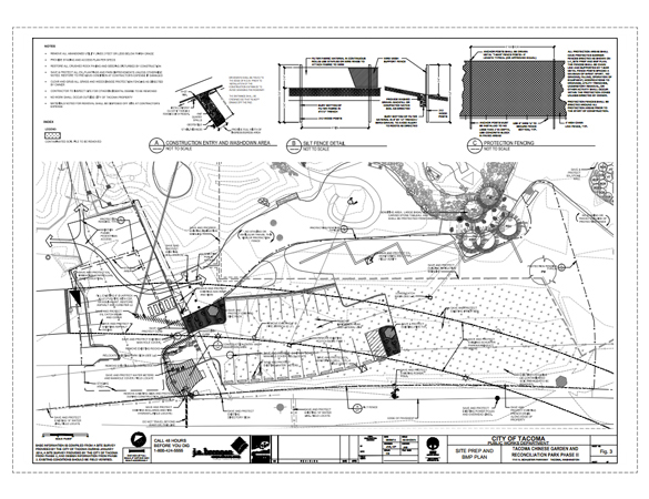 The park’s third phase will add approximately 30 parking spaces to the existing parking lot, remove approximately 1,000 cubic yards of contaminated soil currently stockpiled on site under the Schuster Parkway Bridge, and add amenities such as signage, a bamboo wall with a Chinese motif, plants, and lighting, according to City staff. The City put the project out for bid in December (see “Tacoma Bid Watch: Chinese Reconciliation Park, Sheridan Elementary Safe Route, and sidewalk improvements,” Tacoma Daily Index, Dec. 16, 2014). The bid deadline expired in January, and six contractors submitted bids (see “Tacoma Bid Watch: Chinese Reconciliation Park update, transient camp cleanups, and ADA improvements,” Tacoma Daily Index, Jan. 29, 2015). T. Miller Construction of Auburn, Wash., submitted the lowest bid, according to City staff. The project is largely being paid for thanks to a major grant from the Washington State Historical Society (see “Tacoma’s Chinese Reconciliation Park awarded $388K heritage grant,” Tacoma Daily Index, Aug. 6, 2013).