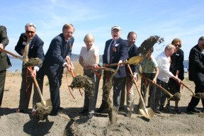 Former Tacoma Mayor Bill Baarsma (second from left), along with other elected officials and community leaders, breaks ground in August 2005 on the new Chinese Reconciliation Park, located along Schuster Parkway on the shores of Commencement Bay. (FILE PHOTO BY TODD MATTHEWS)