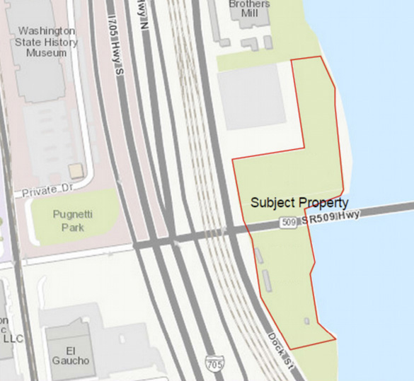 - The park is currently unnamed and consists of three parcels on either side of the State Route 509 bridge. It is located at 1955 Dock Street, 2101 Dock Street, and 2119 Dock Street. Two parcels — 2101 Dock Street and 2119 Dock Street — are owned by the Foss Waterway Development Authority, and one parcel — 1955 Dock Street — is owned by the City of Tacoma. The park opened to the public five years ago. (IMAGE COURTESY CITY OF TACOMA)