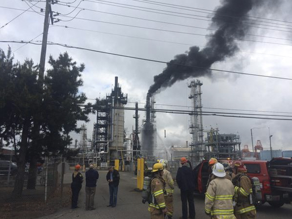- Tacoma fire fighters responded Wednesday morning to reports of a crude oil burning at a refinery located on the Port of Tacoma tide flats. (PHOTO COURTESY TACOMA FIRE DEPARTMENT)