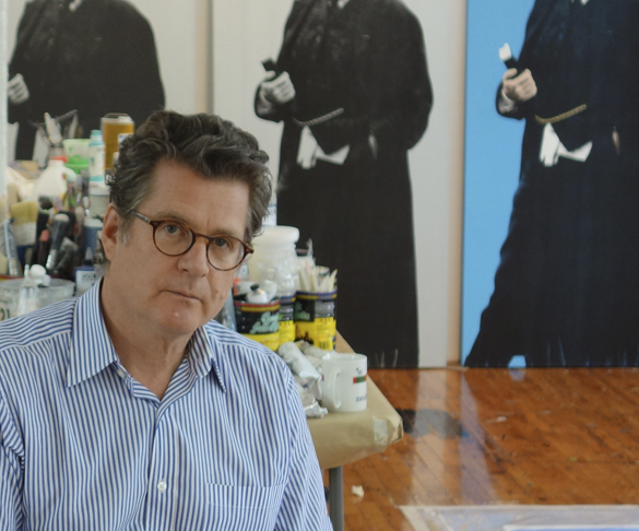 Artist Deborah Kass and Vincent Fremont in the artist’s studio in 2012. Fremont was one of Andy Warhol’s closest associates. Today, Fremont is a filmmaker, art advisor, and artist representative. (PHOTO COURTESY PAUL KASMIN GALLERY)