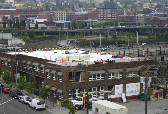 The Tacoma Daily Index, which regularly reports on renovations and adaptive re-uses of Tacoma’s oldest (and often historic) buildings (see “Dome District Revival: With former Durobilt building, pair continues historic preservation streak on Puyallup Avenue,” Tacoma Daily Index, Aug. 2, 2012; “High Hopes for Historic Tacoma Skyscraper,” Tacoma Daily Index, Jan. 13, 2011; “Luzon Unlocked,” Tacoma Daily Index, Aug. 28, 2008; “New tenant, lobby renovation for downtown Washington Building,” Tacoma Daily Index, Jan. 7, 2008; and “A ‘Vintage’ Contemporary,” Tacoma Daily Index, Feb. 28, 2006), recently reached out to Summit Public Schools regarding the Dome District project. Last week, we toured the site with Kaloper, Rodriguez, and representatives of the project contractor, Korsmo Construction, and the project designer, BCRA. Kaloper discussed the project at length, and his comments are included in today’s edition of the newspaper.