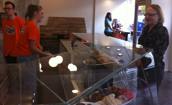 “We’re just an extension of grandma’s kitchen — where grandma used to make donuts from scratch,” Peterson told the Tacoma Daily Index this morning as customers stopped by to order donuts, coffee, and relax inside the store’s 1,500-square-foot space located at 766 St. Helens Ave. “We make the frostings. We make limited quantities. We just make good old-fashioned donuts by hand. We kind of call our donuts the working man’s donuts. We just make a great donut for a good price.”