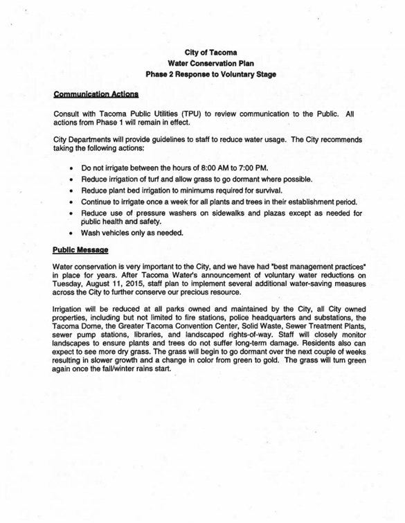 Last week, Tacoma Assistant City Manager Mark Lauzier asked general government department directors to reduce water consumption in their departments by at least 10 percent (see memo below or click here).