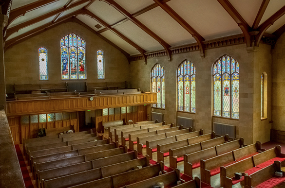 The building includes over 18,000 square feet. There are four large classrooms. There are several smaller rooms. There is a large social hall with a commercial kitchen. The magnificent Gothic sanctuary with its beautiful stained glass windows seats 250-300. There is a pipe organ and five pianos. We hope to also host weddings in the future.