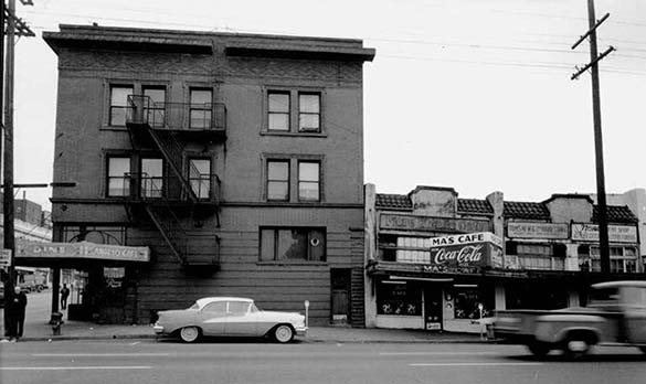 - A scene outside Seattle’s Occidental Tavern Cafe circa 1952. (ELMER OGAWA PHOTOGRAPH / COURTESY UNIVERSITY OF WASHINGTON LIBRARIES SPECIAL COLLECTIONS)
