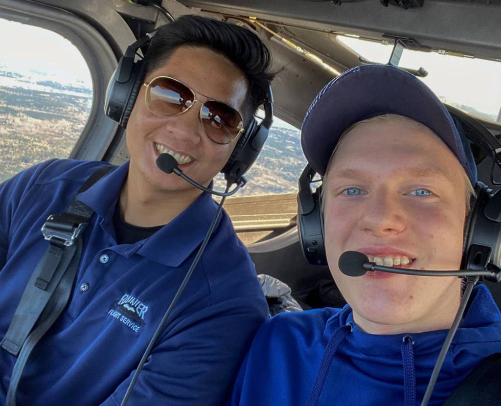 SEATTLE—The Museum of Flight’s Aeronautical Science Pathway (ASP) program for high school students wanting to pursue careers in aviation has led to pathways crossing in the sky as an ASP alumnus helps a new ASP student earn his wings. Stephen Green, an 18-year-old high schooler enrolled in the ASP program recently started to learn how to fly from Christian Canlas, 21, now a professional flight instructor who graduated from the Museum’s inaugural ASP program in 2017.