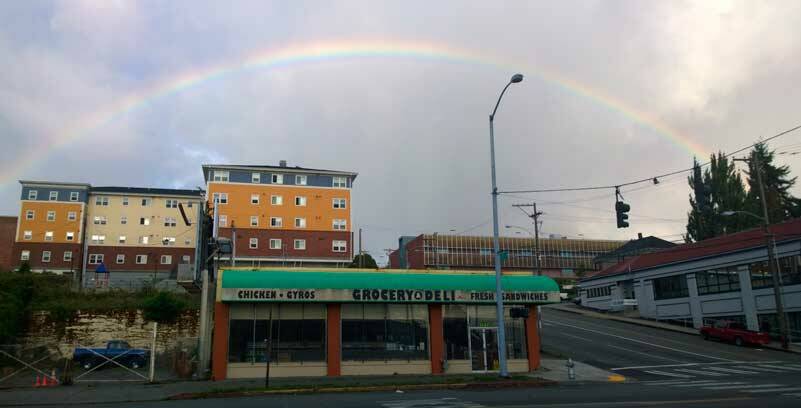 As the song from The Wizard of Oz puts it, there’s refuge “somewhere over the rainbow”. We in Tacoma, for better or worse, live our lives under the rainbow. (Photo by Morf Morford)