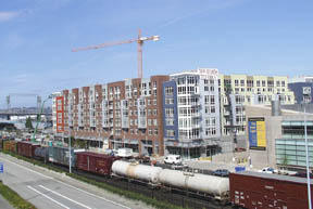 The upscale apartment/condo building is set to have its grand opening in the fall.