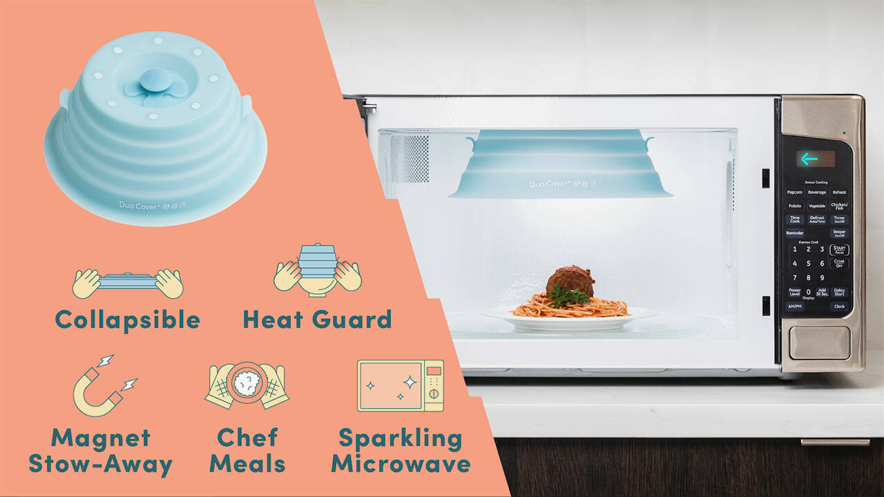 Duo Cover aims to be more than just another microwave cover. Described as “revolutionary,” the device keeps your microwave clean and free from food splatters while also steaming your food.