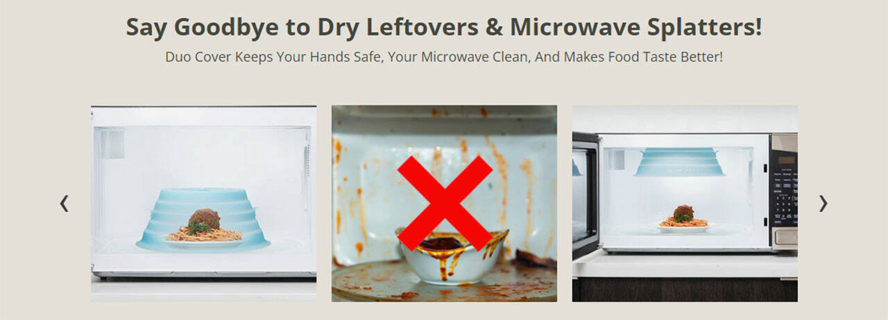 Duo Cover is designed to be the ultimate microwave food cover. Some people like Duo Cover for making their leftovers taste better. Others like Duo Cover for avoiding a messy microwave, locking moisture into their food, or keeping their fingers free from burns.