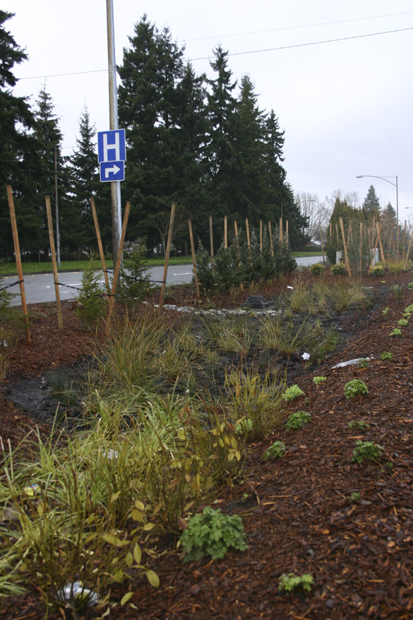 Stormwater runoff from the 0.63 acres of arterial roadway will now be filtered with bio-retention rain gardens. Nearly half an acre is enhanced with landscaping that will improve the City’s tree canopy, adding more than 200 new trees and reducing rainwater runoff into the Thea Foss watershed. In addition, a new median has been constructed on South Sprague Avenue to provide traffic calming near the new neighborhood gateway sign.