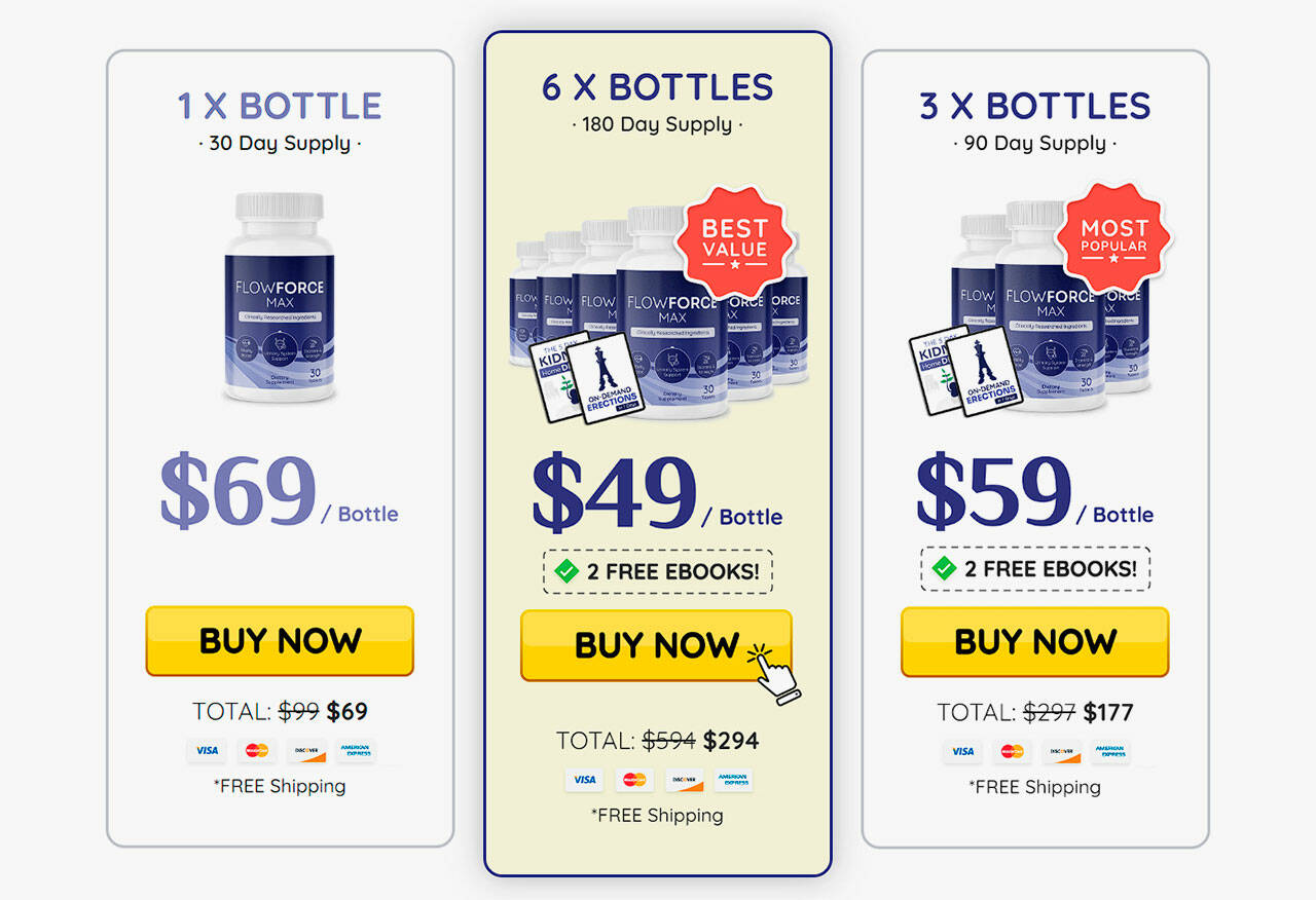 Diving into the world of FlowForce Max, you’ll discover a variety of packages designed to cater to your unique journey. Whether you’re taking your first steps with a 30-day supply at $69, embarking on a 90-day sojourn for $177, or committing to a 180-day expedition at $294, there’s a perfect fit for everyone. These thoughtfully curated options ensure that you can choose the path that aligns with your health goals and journey duration.