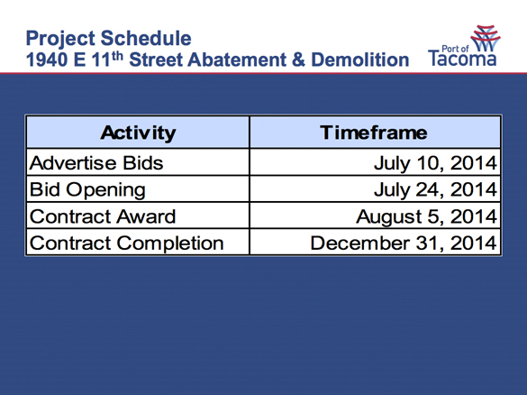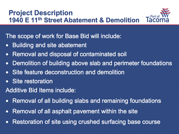 “It will be good to see that work completed,” said Port of Tacoma Commissioner Clare Petrich during a commission meeting on July 3, when commissioners authorized funding for the demolition.