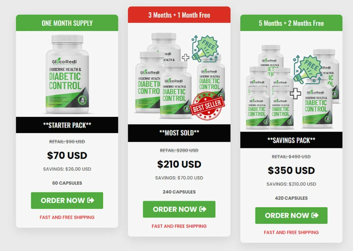 GlucoRedi is priced at $70 per bottle, although you can save money by ordering multiple bottles at once.