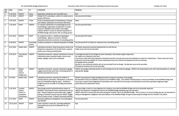 The consulting parties would like to see more, such as a long-term plan that includes graffiti and litter removal, interpretive signs, and incorporation of the bridge into the nearby Foothills Trail, which is owned and operated by Pierce County. The county has said it does not want to take over ownership and responsibility of the bridge.