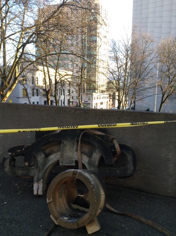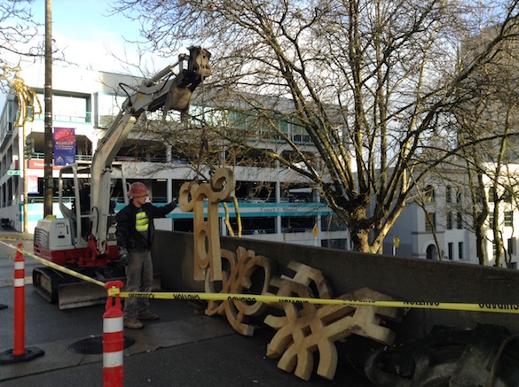 In November, four contractors responded to the City of Tacoma’s call for bids to remove and dispose of the art installation (see “4 contractors bid on project to remove aging art installation downtown,” Tacoma Daily Index, Dec. 3, 2015; and “Tacoma Daily Index Top Stories — December 2015,” Tacoma Daily Index, Jan. 4, 2016).