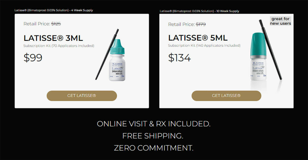• 4-Week Supply of Latisse® (3ml-bottle): $109 (or subscription price: $99)