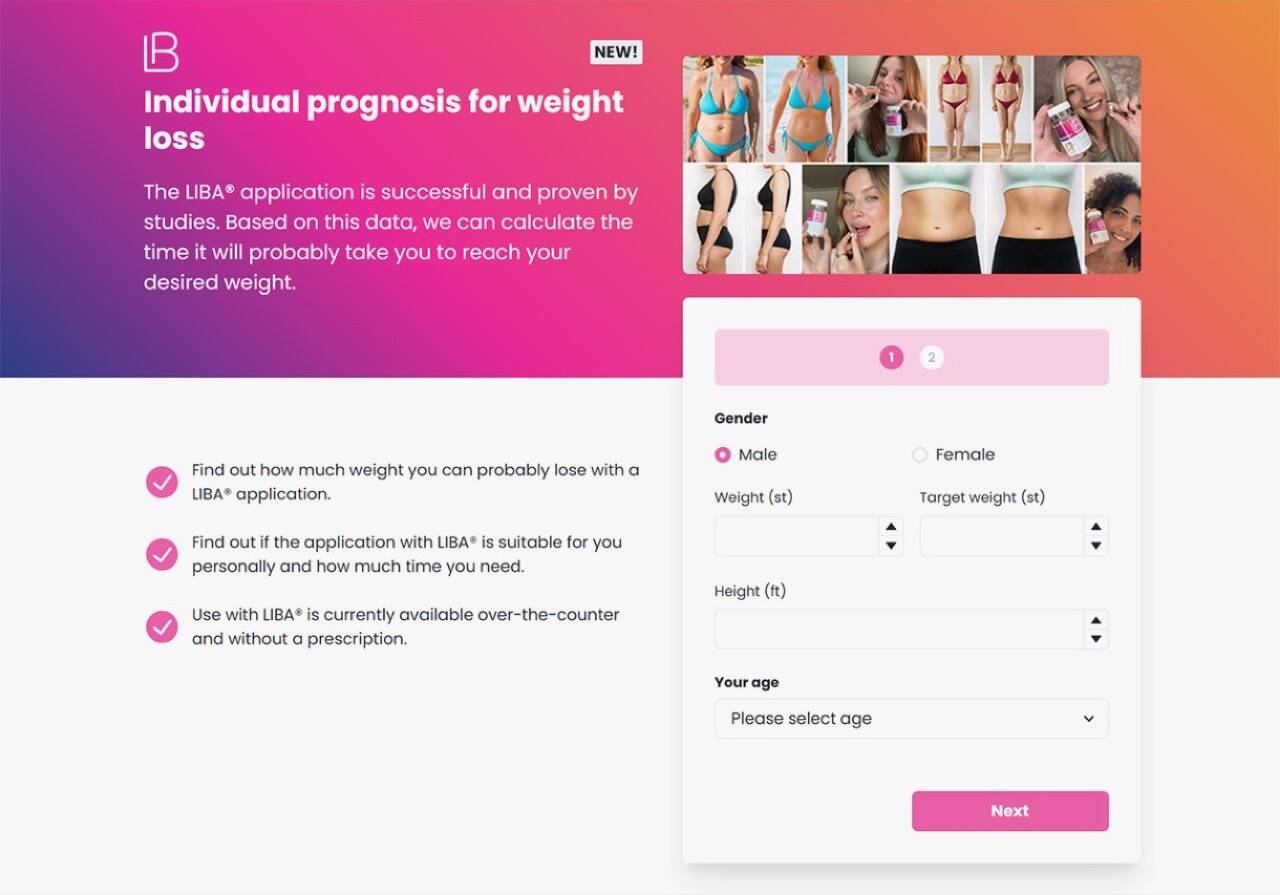 To get started with LIBA, just complete an online quiz at the official website. LIBA asks about your current weight and target weight. Then, LIBA calculates how long it would take you to reach your target weight by taking LIBA.