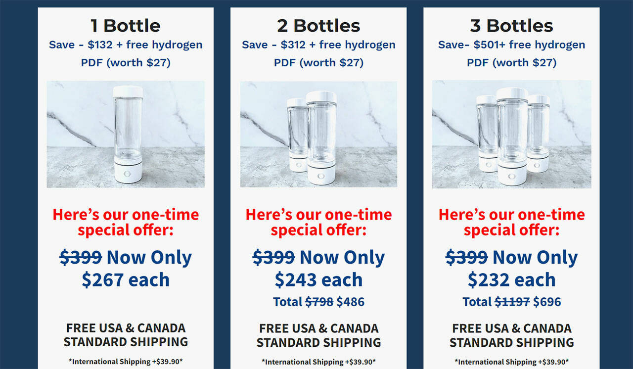 - 3 Bottles: $696 ($232 Per Bottle) + Free Shipping to the US & Canada + Free Hydrogen Water eBook