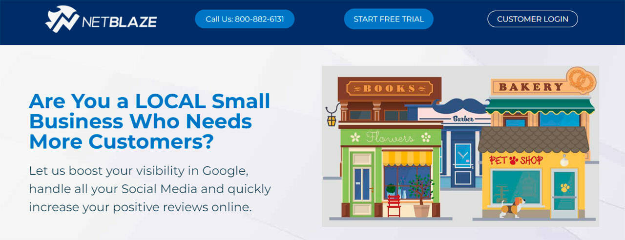 The NetBlaze services aim to attract more customers to your business and boost your small business’s visibility in Google, handle social media, and quickly increase positive reviews online.