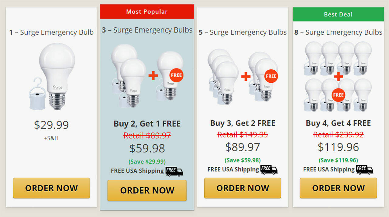 Here’s how pricing works when ordering the Surge Emergency Bulb online today: