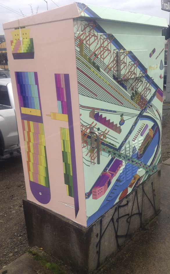 Spotted this week in Tacoma’s Dome District — the first piece of art created and installed as part of the City of Tacoma’s Traffic Box Wrap Project.