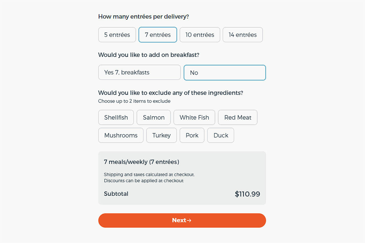 Trifecta also lets you choose from specific dietary goals and preferences, including clean eating, Whole30, paleo, keto, vegan, or vegetarian. You can customize the number of meals you receive per delivery, exclude specific ingredients, and customize your meal plan however you like.