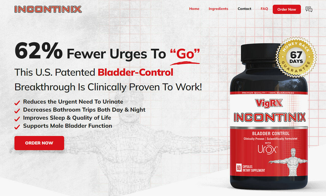 According to VigRX, Incontinix is clinically proven to reduce urges to urinate. By taking two capsules daily, you give your body natural ingredients to reduce your need to urinate, support bladder function, and avoid nighttime trips to the bathroom.