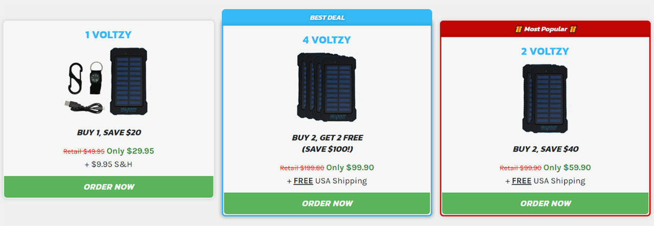 - 4 x Voltzy: $99.90 + Free US Shipping